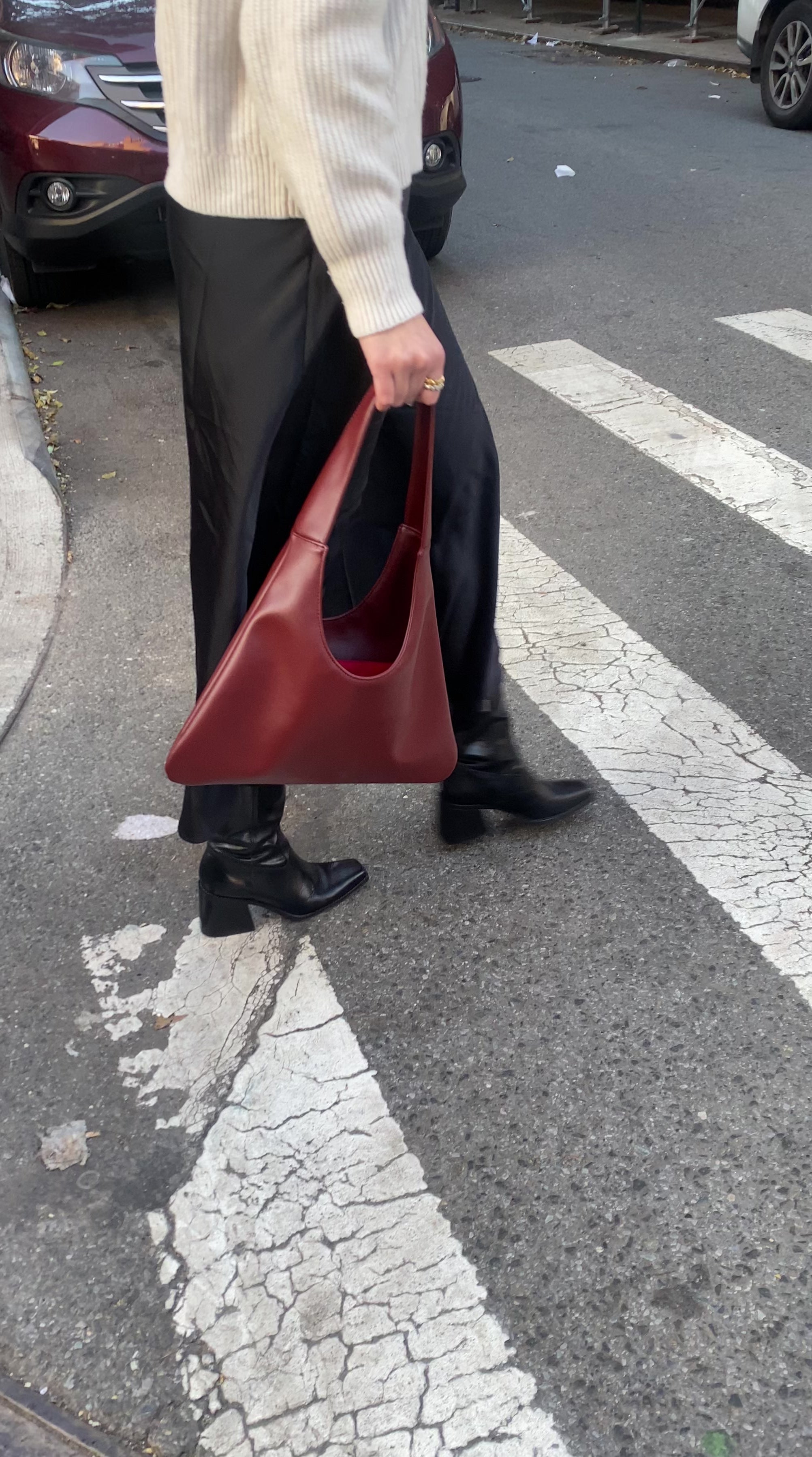 Sweet and easy like honey agave, our cactus leather tote is spacious and embodies minimal funky vibes. We love a triangular shape that can elevate even some dressed-down casual jeans. Perfect go-to bag that never compromises style (or the environment!). Made from bright semi-patent cactus leather,